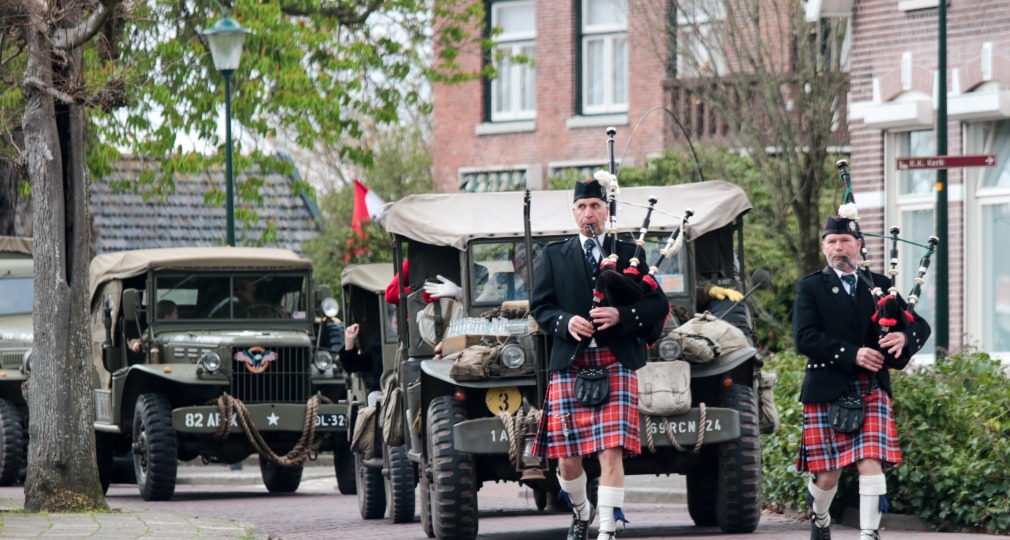 Om 12.30 uur de klokken van beide kerken gaan luiden. Op hetzelfde moment begeleid de Lowland Brigade Pipe Band zullen meer dan 40 militaire voertuigen incl. een tank door de straten van Hellendoorn rijden. Ook koningin Wilhelmina zal niet ontbreken. Daarnaast zullen 2 Piper cups vliegtuigen over het dorp vliegen, wat mede mogelijk is gemaakt door een bijdrage van de Oranjevereniging.