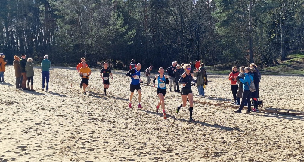 Dinkelcross lopers over het zand