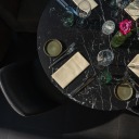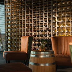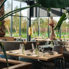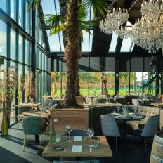 In het restaurant heeft Jeroen, de maître, een fijne sfeer gecreëerd. Aarde tinten gecombineerd met gedurfde designs sluiten mooi aan bij de maaltijden die er geserveerd worden. ‘We laten onze gasten graag proeven wat Twente ons te bieden heeft. Onze wijn is de rode draad, de streekproducten op het bord sluiten daar naadloos op aan. Ook als je geen wijn drinkt, zullen je smaakpapillen flink gaan tintelen van al het lekkers uit Twente’ lacht Jeroen. Robert beschrijft een paar gerechten. ‘We grillen graag een mooi stuk Regiorund, serveren het met groenten uit het seizoen en met onze huisgemaakte frieten. Ook vegetarische gerechten, zoals een tarte tatin van witlof, staan op de kaart. Wat we ook bereiden; we laten altijd de producten voor zichzelf spreken. Smaak genoeg!’