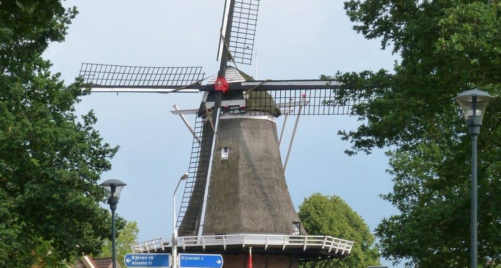 De Hoop Korenmolen is een klassieke molen, zoals je op oudhollandse landschapsfoto’s ziet. De beheerder van de molen, maalt nog steeds koren tot meel. In zijn winkeltje onder de molen koop je verschillende meelsoorten, zoals kant-en-klaar pakketten en pannenkoekenmixen. Doordat de molen electriciteit opwekt, wordt dit de meest duurzame molen van Overijssel genoemd.