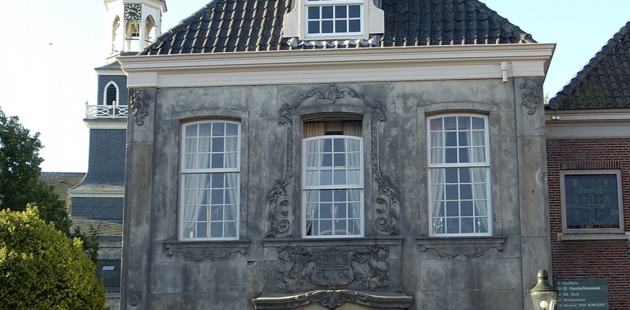 Het meest opvallende pand aan de Markt is het voormalige stadhuis met de fraai versierde gevel en met het stadswapen boven de ingang.